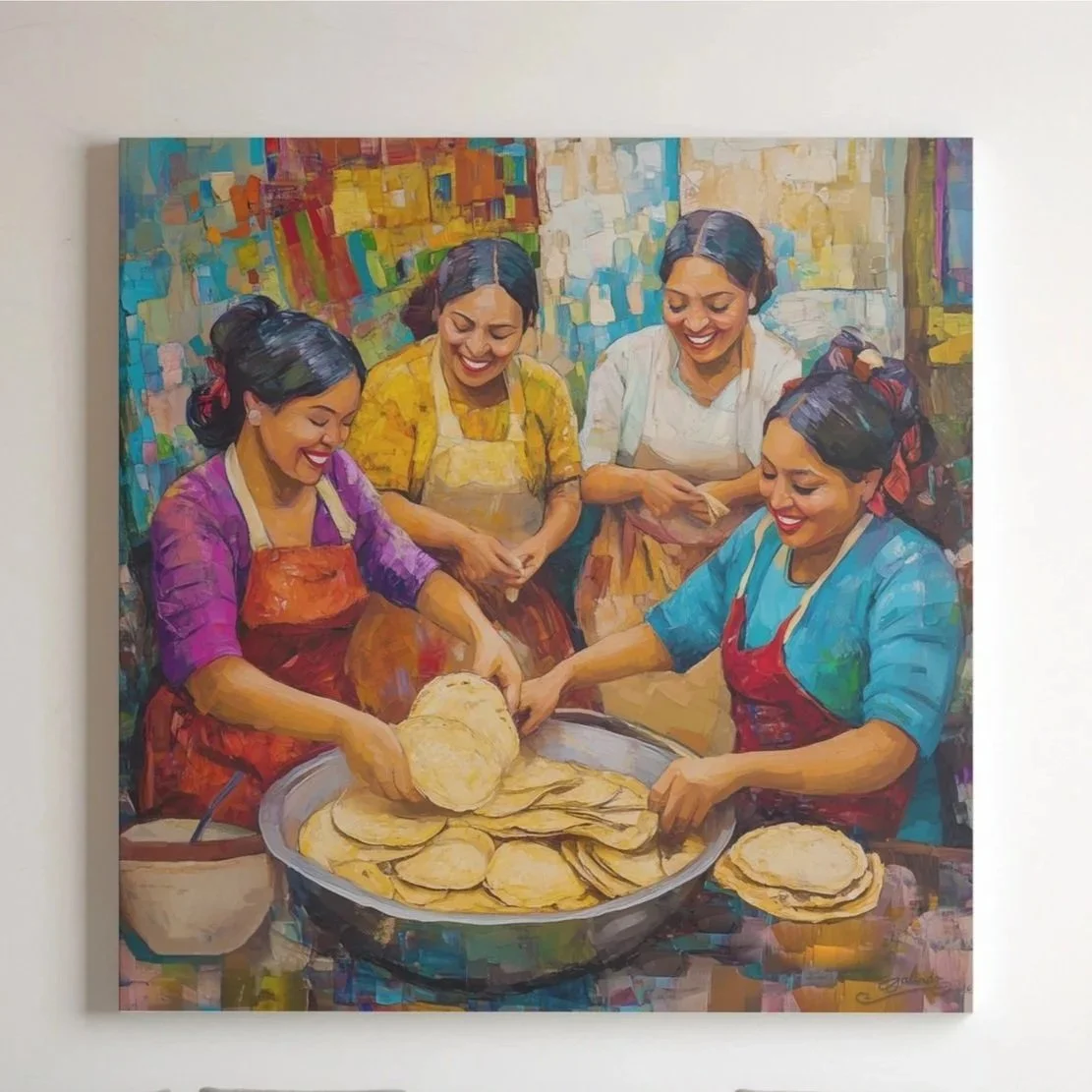 My art is a tribute to women like her. A painting of a group of tías preparing food isn't just a picture; it’s an homage to the tías who are mothers, friends and protectors of tradition. A piece of art that depicts a community of women gathering isn't just a scene; it's an homage to the bond of sorority and the invaluable wisdom that our aunts pass down to us.